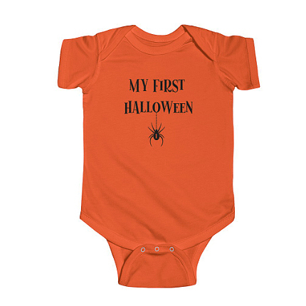 Decorative inscription "My first Halloween" with an illustration- design for children's bodysuits and T-shirts.