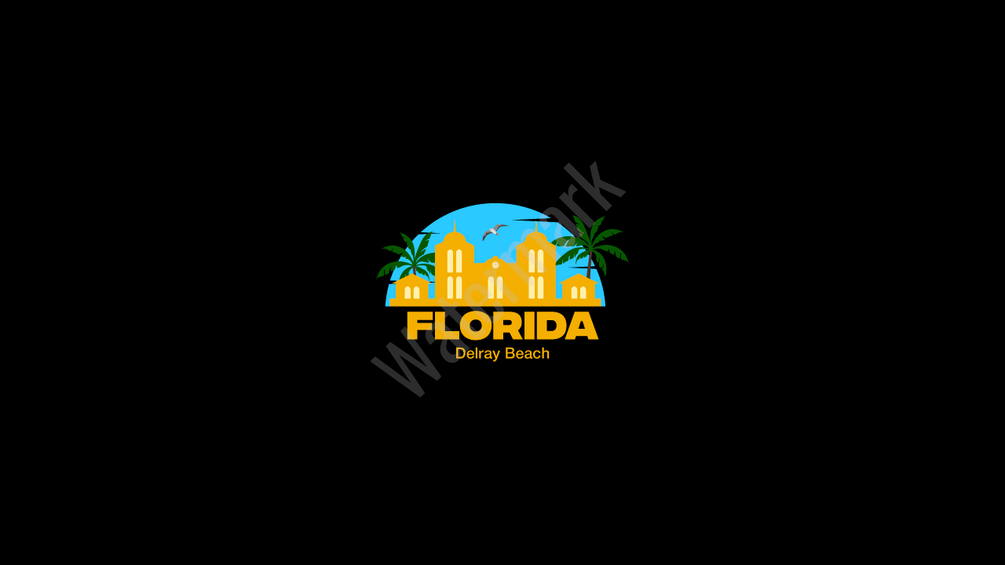 1.Illustration "Colony Hotel, Delray Beach Florida" ( image of the blue sky, seagulls, palm trees and the old Colony Hotel, one of the historical attractions of Delray Beach Florida).
