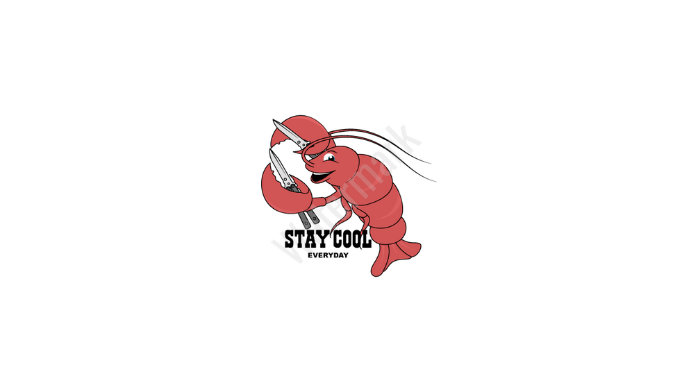 1. Children's Illustration "Stay Cool everyday" (image of a Lobster with knives).
